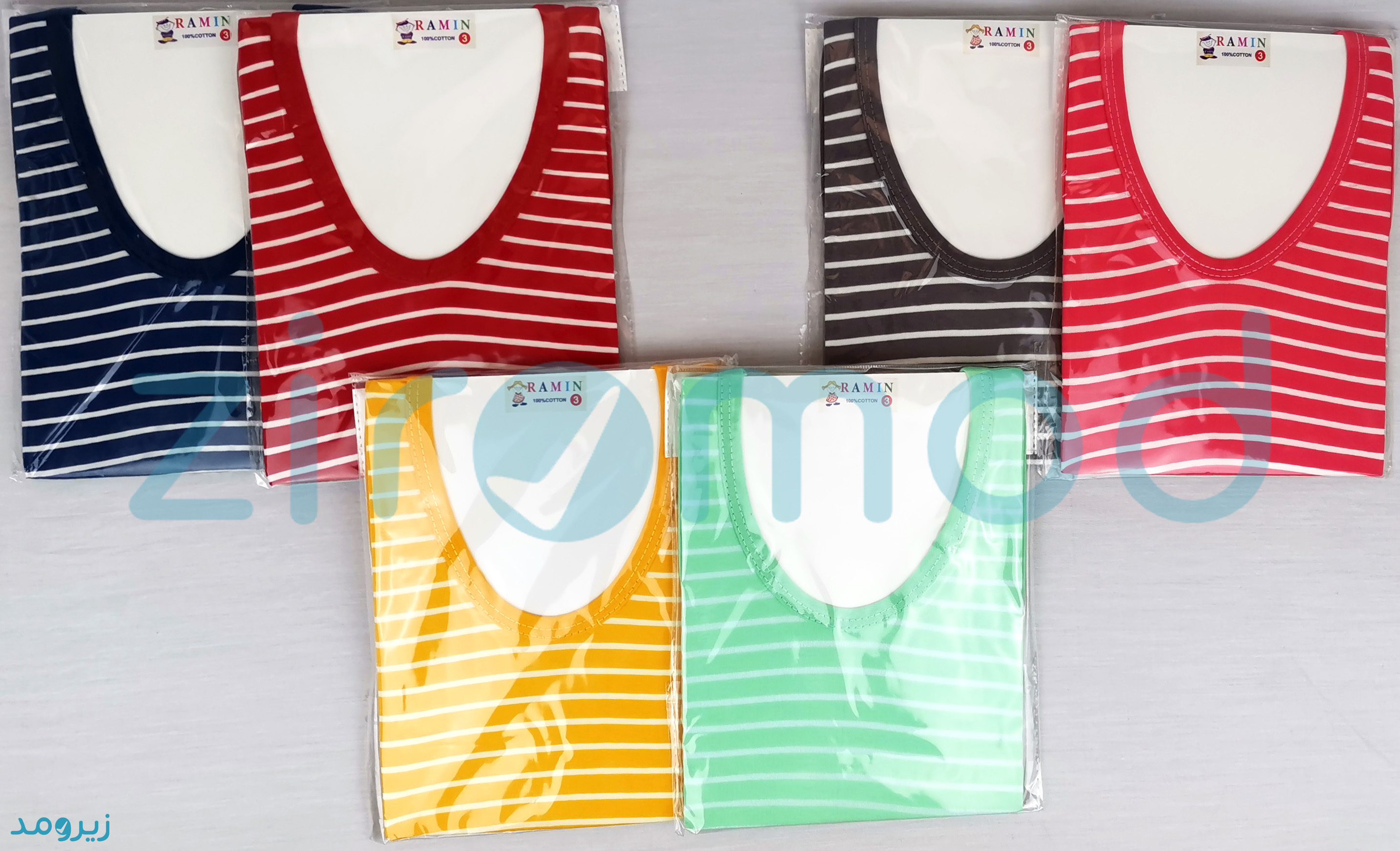 رکابی بچه گانه راه راه رنگی رامین یک انتخاب هوشمندانه می باشد. کیفیت اعلای پارچه در کنار دوخت عالی و رنگ های جذاب از برند رامین، که در زمینه پوشاک کودکان مخصوصا زیرپوش شناخته شده می باشد، می تواند تمام رضایت شما را کسب کند و زیرومد این امکان را به همراه خرید راحت، پرداخت آنلاین و ارسال درب منزل برای شما فراهم کرده است.